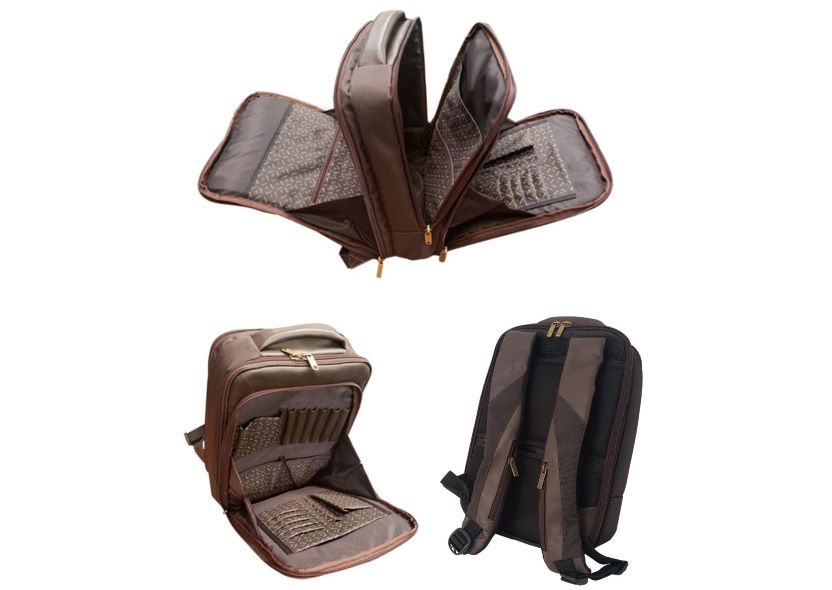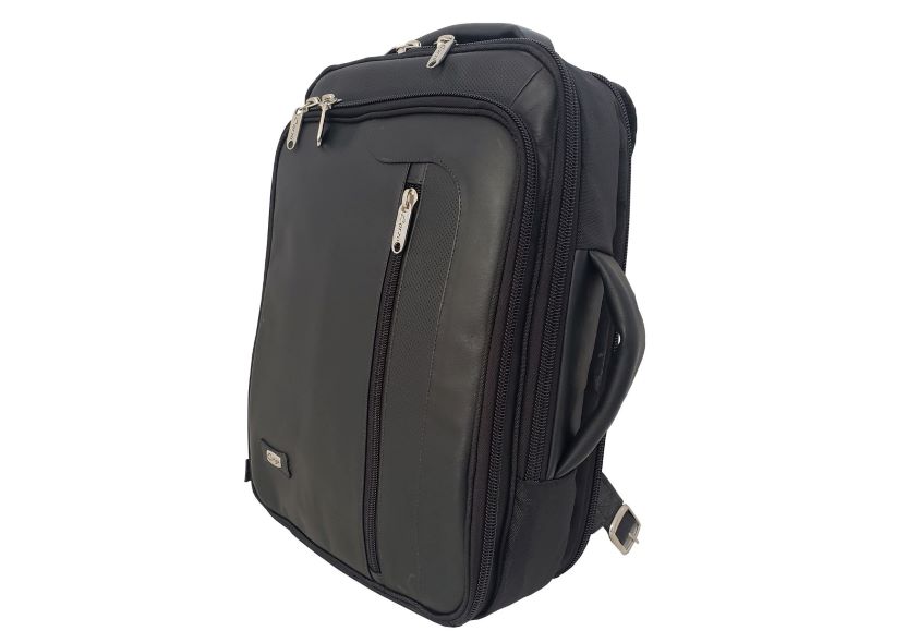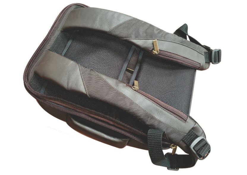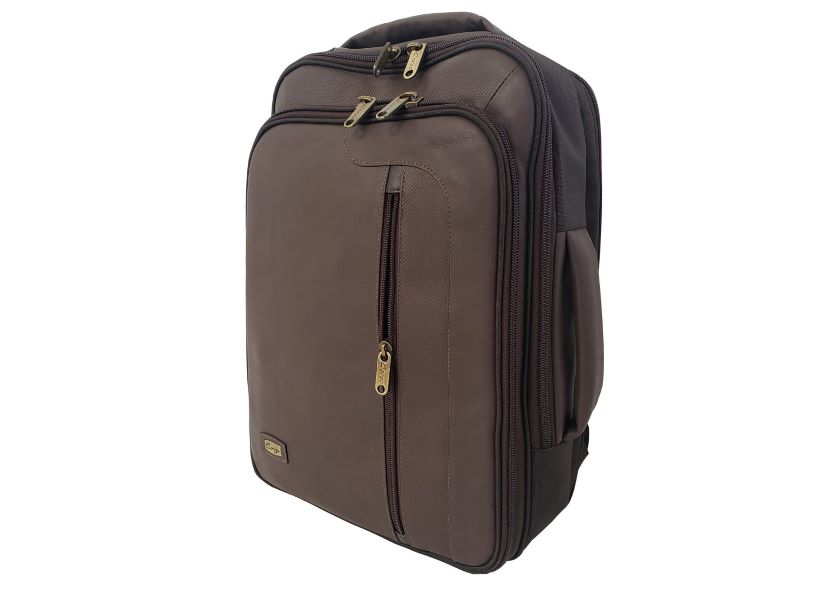 GENUINE LEATHER , executive backpack, in genuine leather with high-end canvas, double handle, 34 services.