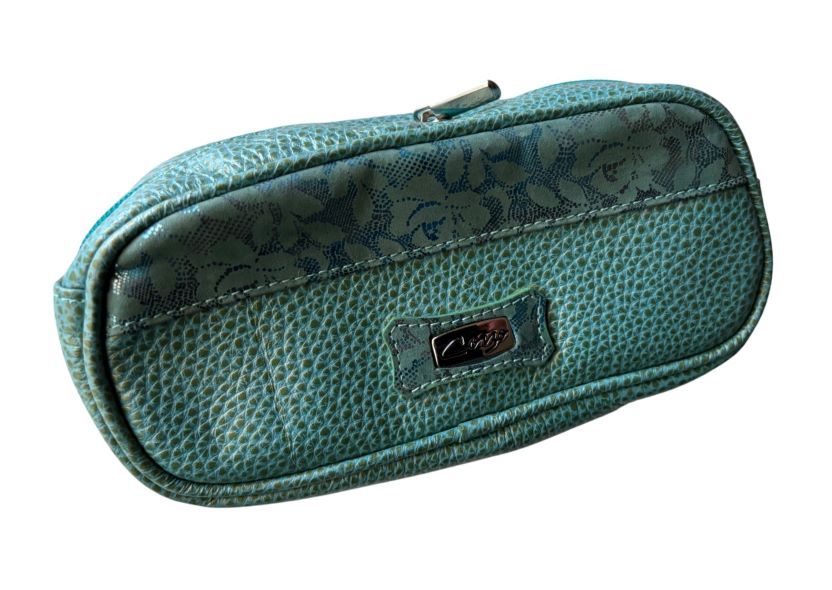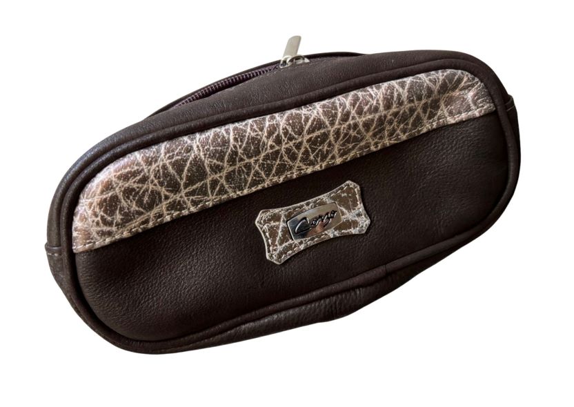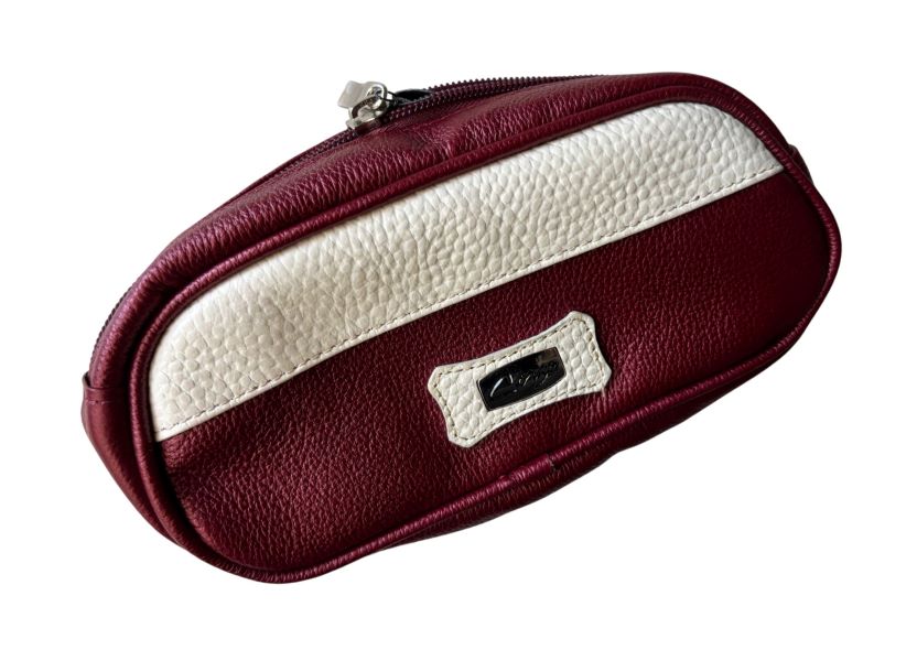 121 – Semi-oval cosmetic bag, in leather with foil detailing – Universal