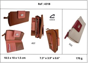 Medium leather wallet for women, with external purse and flap, 12 services.
