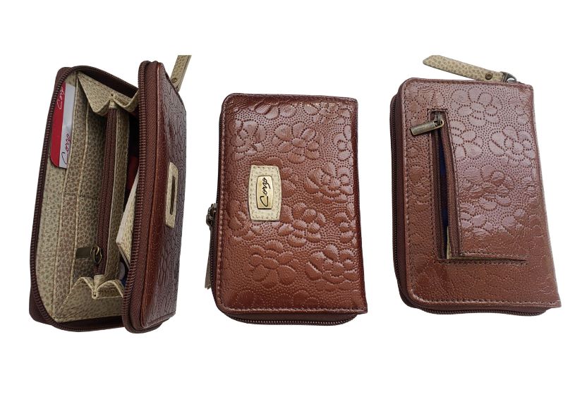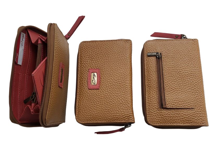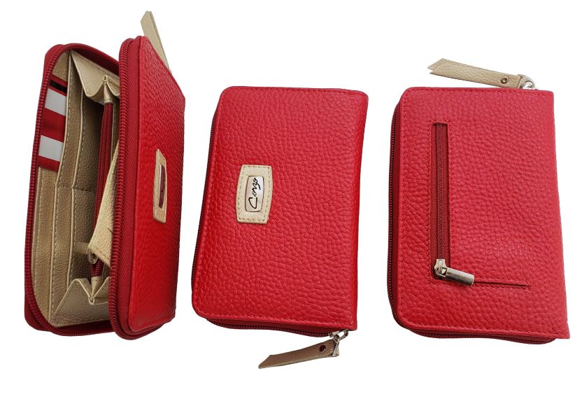 Medium leather wallet for women, 9 services and with detachable card holder with other 7 services.