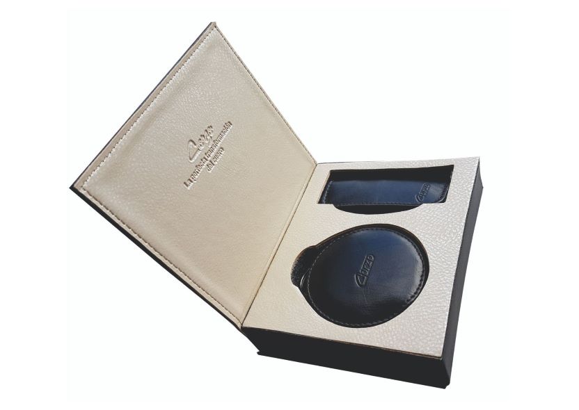Face powder case with lipstick holder in GENUINE LEATHER. The 2 products can also be used as hand purses with a ring to carry it or for keys, a USB holder, a pill box and more uses. Includes luxury case.